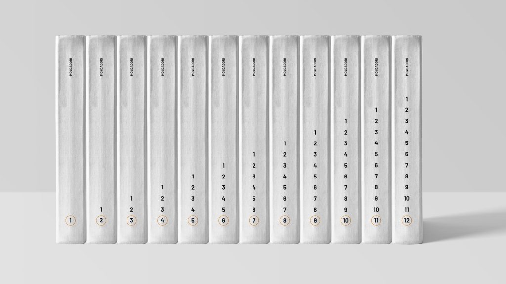 Für die Umsetzung habe ich mir eine kleine Bilderwelt zusammen gestellt, die thematisch in dem Buch vorkommen könnten. Aus der Sammlung habe ich dann farblich harmonierende Bilder ausgewählt und zusammen geschnitten. Die Gestaltung sollte nicht zu kindlich werden, da die Bücher auch für Jugendliche ansprechend sein sollen. Die restliche Gestaltung ist auch sehr grafisch und minimalistisch gehalten, so gibt es spannende kleine Details, die aber nicht zu aufdringlich werden. Die Bandreihe wird auf dem Buchrücken mit einer aufsteigenden Zahlensäule visualisiert, wobei der jeweils aktuelle Band mit einem farbigen Kreis makiert ist. Auf der Vorderseite ist der jeweilige Band auf einem Button präsentiert, dessen Platzierung je nach Covermotiv variieren wird.